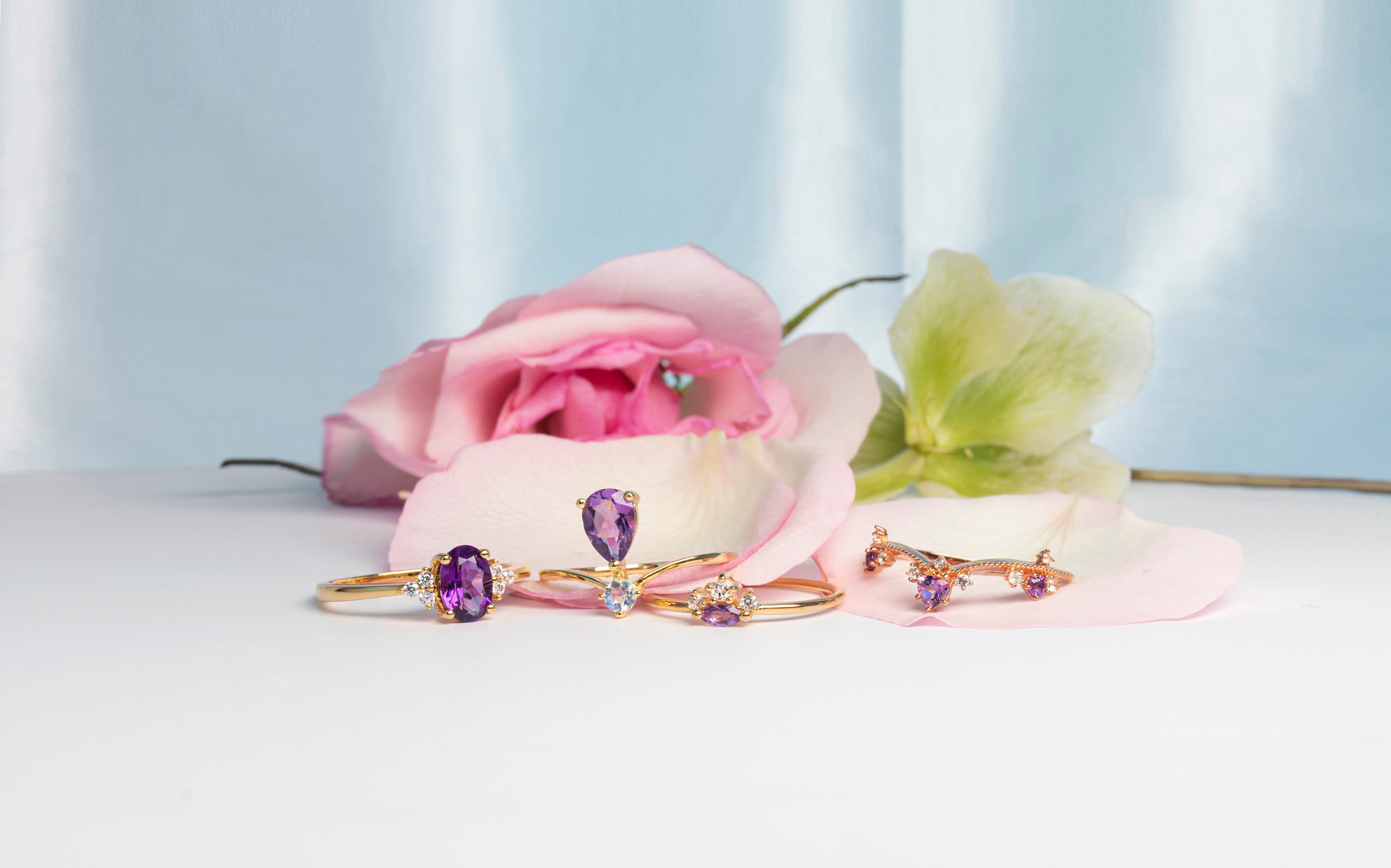 14k Solid Gold Delicate Baguette Amethyst Ring